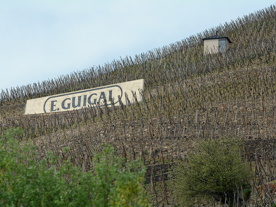 När vi kör in i den lilla byn Ampuis, i hjärtat av Côte-Rôtie, styr vi först mot Château d’Ampuis som ligger alldeles intill floden med de berömda kullarna Côte Brune och Côte Blonde som kuliss. Legenden säger att han som en gång regerade här hade två döttrar. En med svart hår och en som var blond. När de gifte sig gav han de två bästa vingårdssluttningarna som bröllopsgåva, Côte Brune respektive Côte Blonde. Att sluttningarna har lite olika färg och jordmån kan förstås ha spelat in.