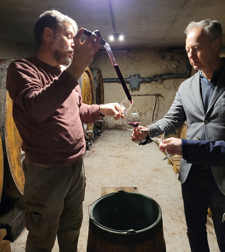 Det anonyma kontoret ger inga direkta ledtrådar om att här pågår vinmakning i den absoluta världsklassen. Efter lite inledande artighetsfraser blir vi ombedda att klättra ner i något som kan liknas vid ett hål i golvet. Det är här nere magiken sker. I den 300 år gamla källaren känns det som tiden stått stilla. Spindelväv och 50–60 år gamla foudre trängs i det trånga utrymmet med låg takhöjd.