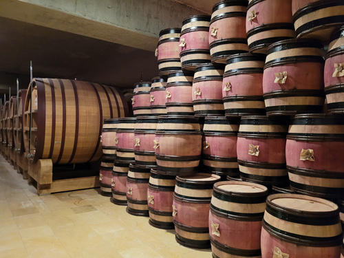 – Vinkällaren omfattar tre hektar och rymmer cirka 5 000 fat, med en total produktion på 8, 9 miljoner buteljer per år, berättade Jacques när vi gick ner i källaren.