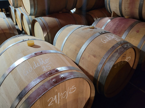 Sedan tillbaka till fatprover av vita. Godello, Pyjama 2025 har lätt reduktiv och fruktig doft av päron, mjuk fruktsyra.