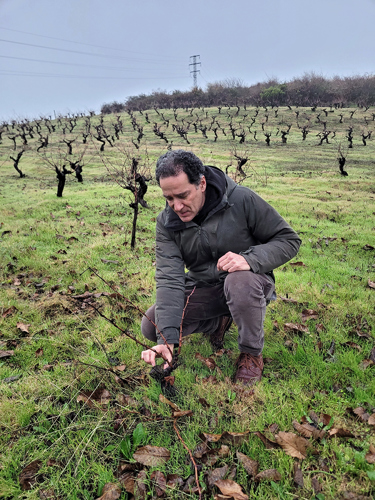 – Jag varken plöjer eller bearbetar jorden, inget gödsel tillförs, jag har täckgrödor för att hantera rankornas vigör, inga herbicider eller pesticider och har frukt och nötträd i vingårdarna för ökad biologisk mångfald och ett rikare liv av mikroorganismer. Här i vingården har jag ungefär tio olika mencíakloner. Ser vinrankorna döda ut brukar jag sparka på dem för att se om de lossnar. Ofta kommer det nya skott underifrån. De gamla ympningarna på amerikansk rotstock planterades mycket djupt, det är ingen risk att de går av under ympningsstället.
